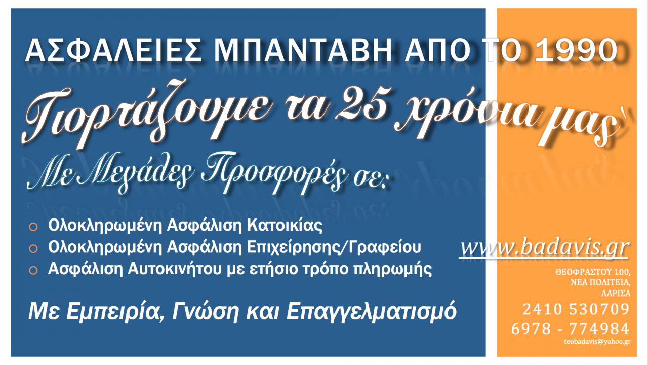 customer tabsΕπικοινωνίαΑσφάλειες - ΑσφαλιστέςΥπηρεσίεςΘεοφράστου 100, Νέα Πολιτεία, ΛάρισαΛΑΡΙΣΑΘΕΣΣΑΛΙΑ 2410530709 69787749842410530706teobadavis@yahoo.grwww.badavis.gr Το προτείνω (έχει προταθεί 0 φορές) ΦωτογραφίεςΠροσφορές ΑΣΦΑΛΕΙΕΣ ΜΠΑΝΤΑΒΗΣ ΘΕΟΔΩΡΟΣ ΑΠΟ ΤΟ 1990Facebook LikeShare on FacebookTweet Widget