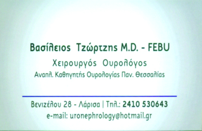 customer tabsΕπικοινωνίαΑναπληρωτής Καθηγητής Ουρολογίας Παν/μιου ΘεσσαλίαςΩράριο: 18:00 -20:00 με ραντεβούΟυρολόγοι - ΑνδρολόγοιΥγείαΕλ. Βενιζέλου 28, ΛάρισαΛΑΡΙΣΑΘΕΣΣΑΛΙΑ 2410530643 6945435331uronephrology@hotmail.gr Το προτείνω (έχει προταθεί 1 φορές) ΦωτογραφίεςFacebook LikeShare on FacebookTweet Widget
